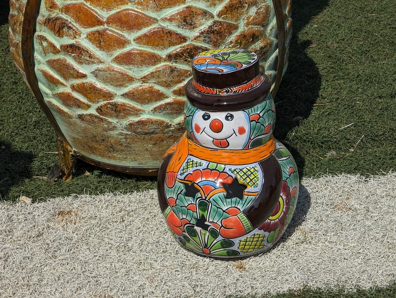 Add a touch of festive charm to your holiday decor with this hand-painted Talavera Snowman, crafted with love to bring Mexican artistry to your winter wonderland.